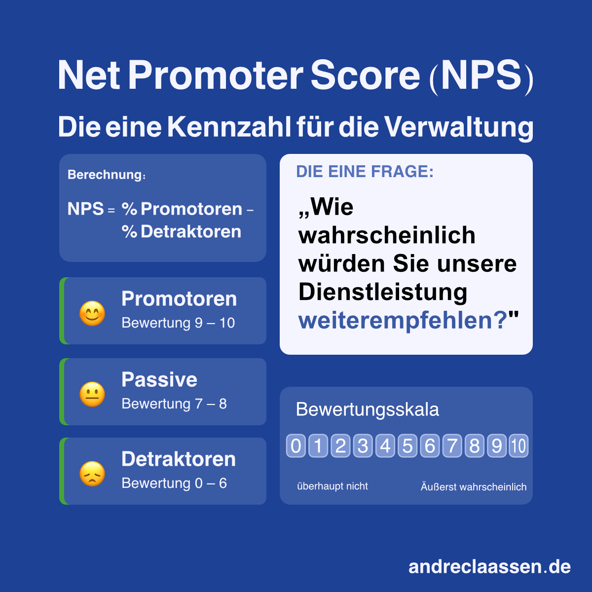 Das ist der Net Promoter Score (NPS). Eine Frage. Eine Zahl. Klare Aussage.
